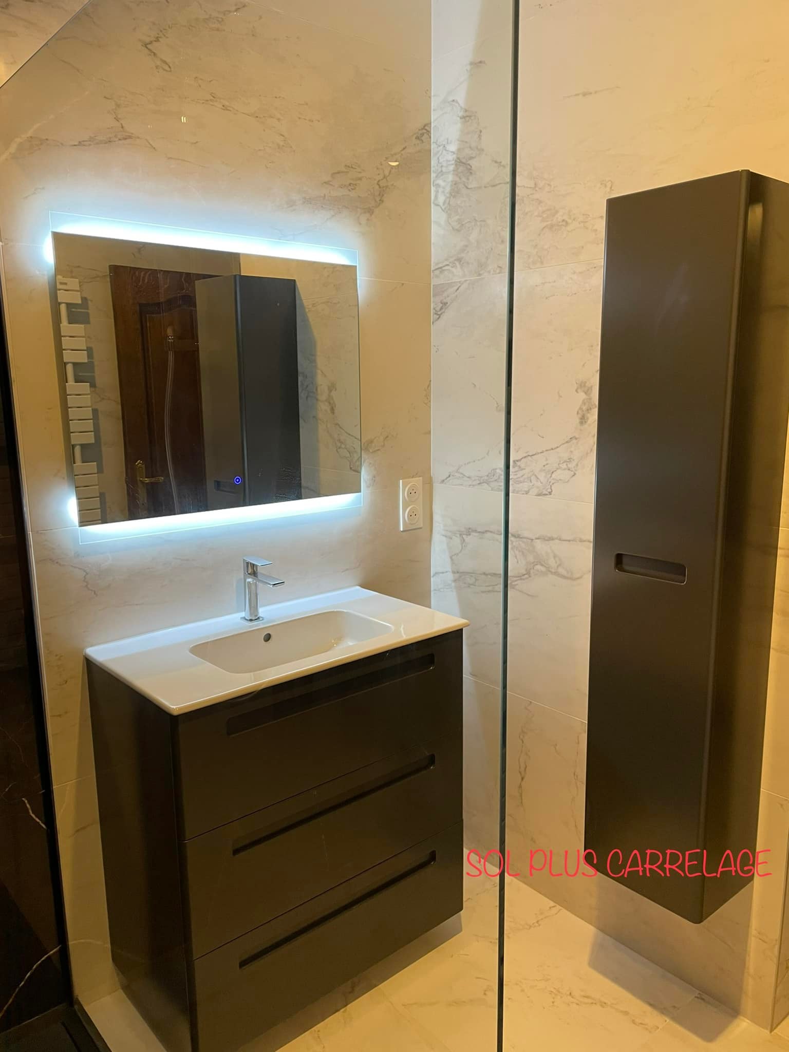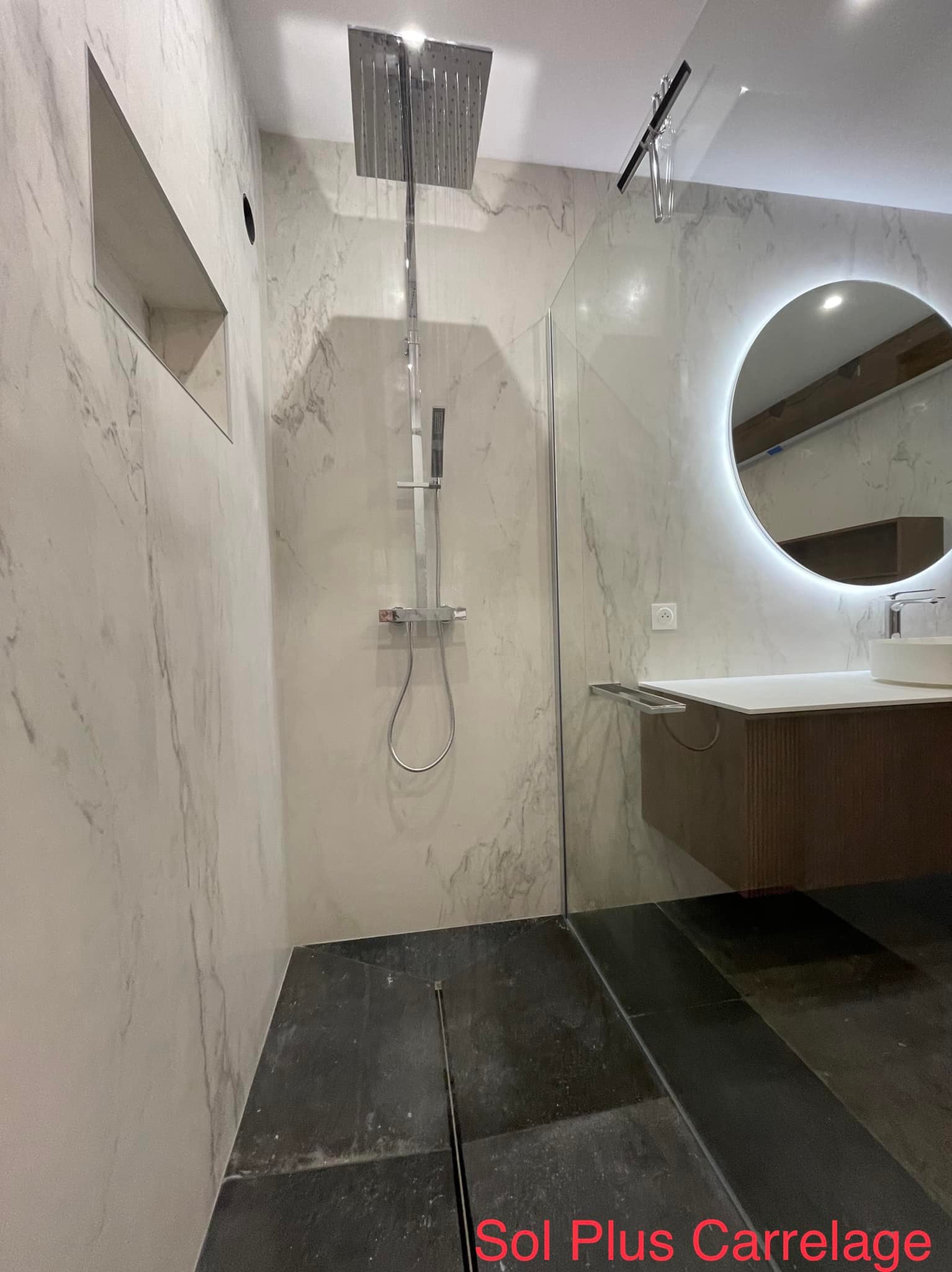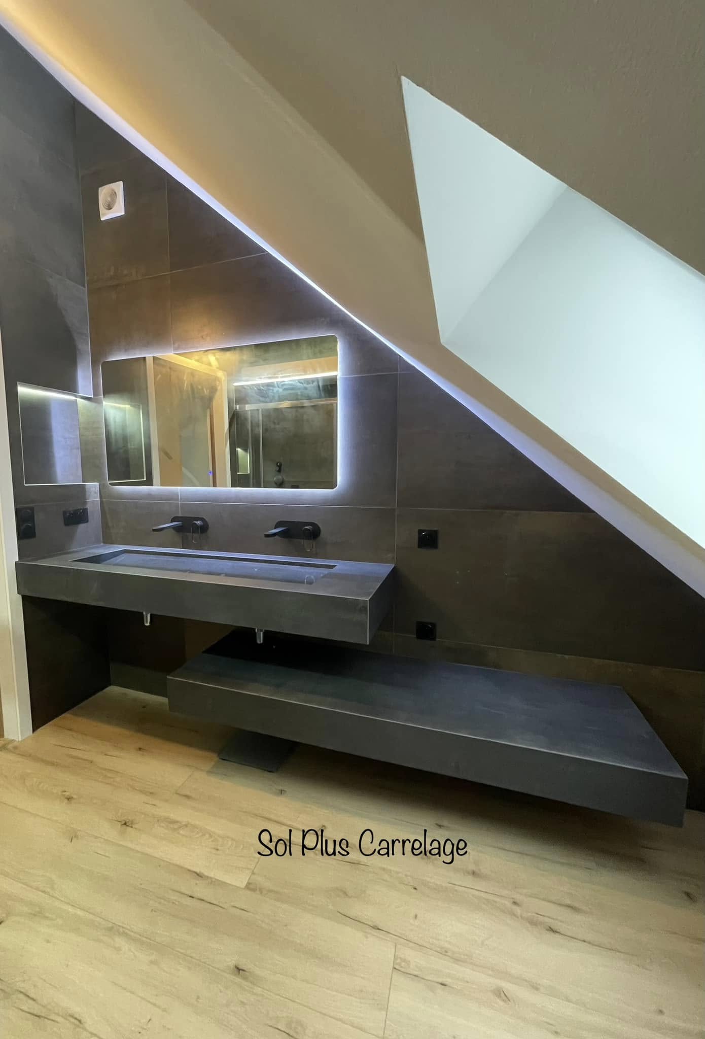 Chez Sol Plus Carrelage, nous imaginons et concevons des espaces sanitaires entièrement personnalisés, pensés pour allier esthétique, confort et praticité. Chaque projet est étudié avec attention afin d’optimiser les volumes, la circulation et l’ergonomie de votre salle de bain. Nous vous accompagnons dans le choix des matériaux, des couleurs et des équipements pour créer un ensemble cohérent et harmonieux. Que vous souhaitiez une ambiance moderne, épurée ou plus classique, nous mettons tout en œuvre pour concrétiser un espace à votre image, adapté à votre mode de vie.
